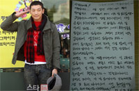 先日入隊したRAIN(ピ/チョン・ジフン)が直筆の手紙でファンに近況を伝えた。