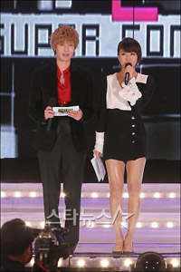 司会役のキム・ヒョンジュン&ハ・ジウォン 28日午後、釜山広安里でSBS「2011韓流ビーチコンサート」が開催された。写真は司会を務める歌手キム・ヒョンジュンと女優ハ・ジウォン。 STARNEWS/朝鮮日報日本語版