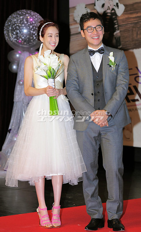「新郎新婦」オム・テウン&チョン・リョウォン 19日午前、ソウル市中区の梨花女子高校100周年記念館で、映画『ネバーエンディングストーリー』制作報告会が行われた。写真は、そろってポーズを取る俳優オム・テウン(右)とチョン・リョウォン(左)。 イ・デドク記者 朝鮮日報日本語版