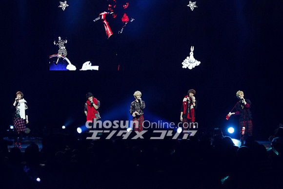 来年1月11日にリリースされるSHINee初のLIVE DVD「SHINee THE 1ST CONCERT IN JAPAN “SHINee WORLD”」のライブ映像ダイジェストが初公開された後、クリスマスの衣装に身を包んだSHINeeが再び登場。クリスマス・イブという特別なこの日を、日本のファンと一緒に過ごせる喜びを口々に語り、先日リリースしたクリスマスソング「Last Christmas」を披露。会場は一気にクリスマスムードに包まれた。