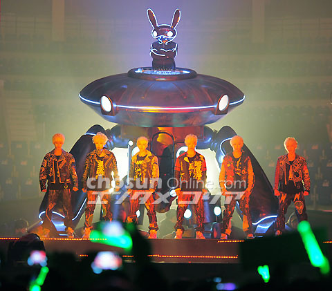 B.A.Pデビュー記念ライブ 28日午後6時、ソウル市中区の奨忠体育館で、新人グループB.A.Pのデビュー記念ライブが行われた。写真は迫力あるパフォーマンスを披露するB.A.P。 イ・デドク記者 朝鮮日報日本語版