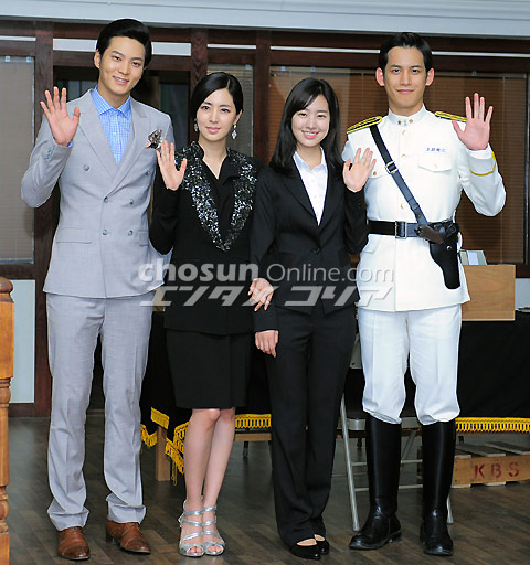 メーンキャスト勢揃い=『カクシタル』 京畿道水原市のKBSドラマセンターで27日午後、ドラマ『カクシタル』(KBS第2)の撮影現場公開および記者懇談会が行われた。写真は、ポーズを取るチュウォン、ハン・チェア、チン・セヨン、パク・ギウン(左から)。 イ・デドク記者 朝鮮日報日本語版