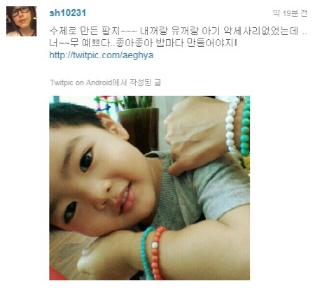 元SESシュー、息子の写真公開 アイドルグループSESの元メンバー、シューが2歳になった息子イム・ユ君の写真をツイッターで公開した。 シューは「手作りのブレスレット。わたしのとユのブレスレット、すごくお気に入り。毎晩作らなきゃ」とツイートした。息子イム・ユ君は大きな目と高い鼻筋が母親と父親イム・ヒョソン選手とそっくりだ。 シューは2010年、プロバスケットボール選手のイム・ヒョソンと結婚。その後、育児と芸能活動を平行して行っている。 チョン・ヒョンファ記者 STARNEWS/朝鮮日報日本語版
