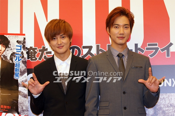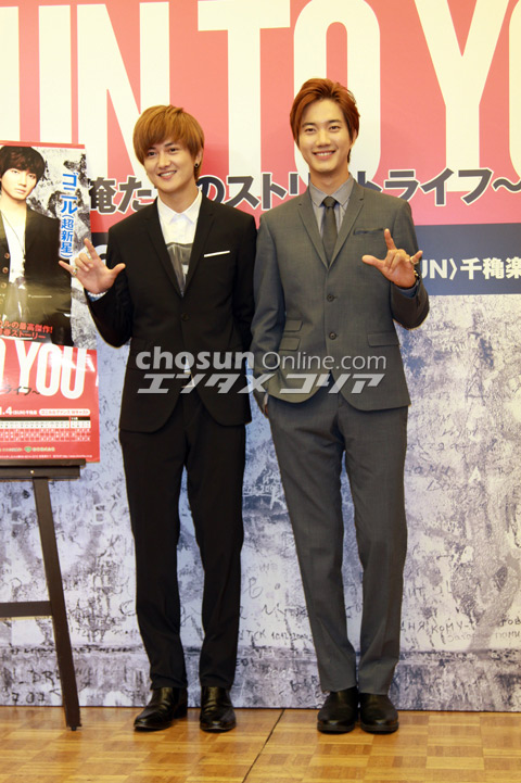 10月4日よりミュージカル『RUN TO YOU~俺たちのストリートライフ~』が大阪松竹座で上演されるにあたって、その制作発表が3日、都内ホテルで行われ、主演のゴニルとグァンス(共に超新星)が出席した。
