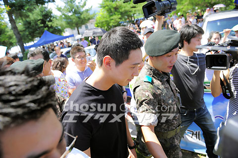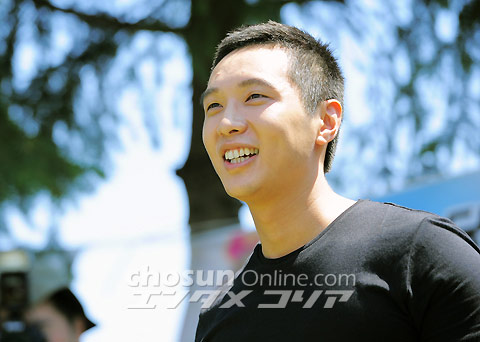 チ・ヒョヌ「きょう入隊します!」 俳優チ・ヒョヌが7日、春川陸軍102補充隊を通じて、現役兵として入隊した。写真は同日午後1時、入隊を前に取材陣のインタビューに応じるチ・ヒョヌ。 イ・デドク記者 朝鮮日報日本語版