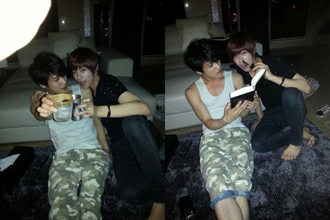 7日午後、ジェジュンはツイッターに「スンヒョン、可愛い、可愛い」「水で乾杯するのはあり? なし?」とツイートし、2枚の写真を掲載。