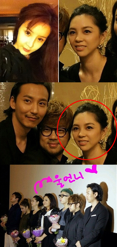 ボムの実姉パク・ゴウンは、映画『アンサンブル』を制作したキム・ナムギルやヴァイオリニストのクォン・ヒョクジュと仲良くポーズを取っている。はっきりとした目鼻立ちで小顔のパク・ゴウンは女優顔負けの美貌が印象的だ。