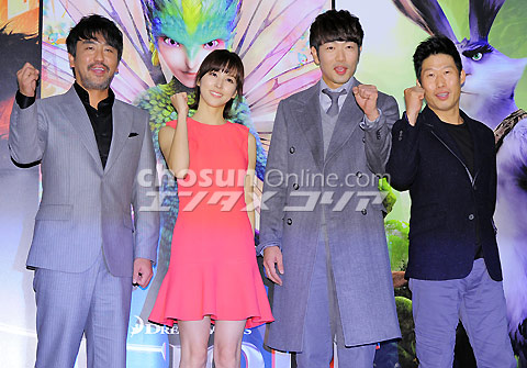 『不思議の国のガーディアンズ』メディア試写会 19日午後、往十里CGV(ソウル市城東区)で、アニメ映画『不思議の国のガーディアンズ』のメディア試写会・記者懇談会が行われた。写真は吹き替えを担当したリュ・スンリョン、ハン・ヘジン、イ・ジョンヒョク、ユ・ヘジン(左から)。 イ・デドク記者 朝鮮日報日本語版