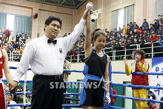 イ・シヨン決勝進出=ボクシング韓国代表選抜 蔚山経営情報高校で11日午後、ボクシング韓国代表第1次選抜戦準決勝が行われ、ライトフライ級(48キロ以下)の女優イ・シヨンが、晋州女子高のチェ・ジユンを相手に判定勝ちを収めた。 イ・ギボム記者 STARNEWS/朝鮮日報日本語版