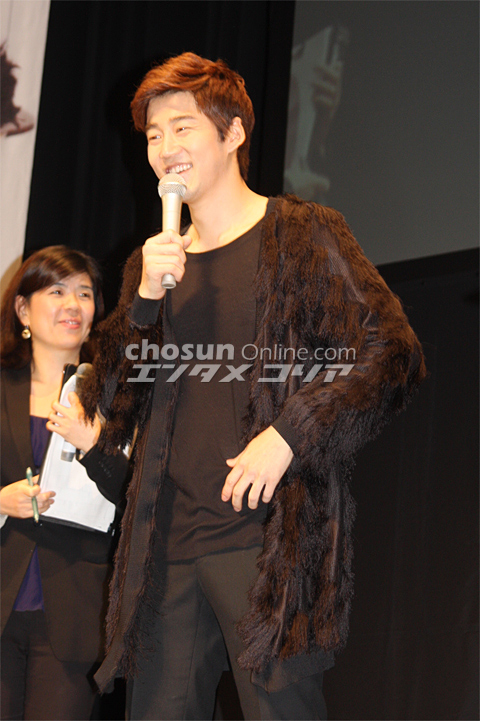 鍛えられた体を披露、演技力も高く評価された映画『プンサンケ』については「撮影の準備期間がなかったので、1カ月間、ほとんど水も飲まないほどで体つくりをした」と苦労を明かした。そして話題となったタバコを吸うシーンについて「北朝鮮のプンサンケというタバコで、タール30、ニコチン30という強いタバコで、2本吸ったところ、くちびるが乾いて、のどもからからになって…でもせりふがなかったのでよかった」と笑わせた。