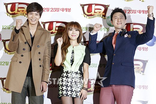アニメ『Niko2』メディア試写会 13日午後、COEXメガボックス(ソウル市江南区)で、アニメ映画『Niko2 Little Brother, Big Trouble』のメディア試写会・記者懇談会が行われた。写真は、同作で声優を務めたチュウォン、ナルシャ(Brown eyed Girls)、キム・ウォンヒョ(左から)。 イ・ギボム記者 STARNEWS/朝鮮日報日本語版