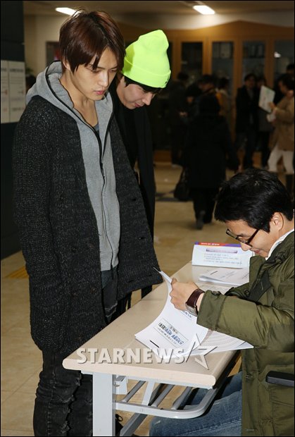JYJジェジュン「投票所を間違えちゃいました」 第18代大統領選挙日だった19日午前、ソウル市江南区庁に設けられた投票所で選挙人名簿を確認する人気グループJYJのジェジュン。 ジェジュンはこの日、勘違いで別の投票所に行ってしまい、選挙人名簿で確認した後、自身が投票すべき投票所に移動した。 イ・ドンフン記者 STARNEWS/朝鮮日報日本語版
