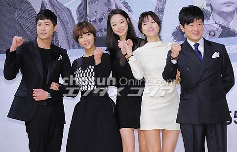 SBS『カネの化身』制作発表会 29日午後、SBS(ソウル市陽川区)でドラマ『カネの化身』の制作発表会が行われた。写真はフォトタイムに応じるカン・ジファン、ファン・ジョンウム、チェ・ヨジン、オ・ユナ、パク・サンミン(左から)。 イ・デドク記者 朝鮮日報日本語版