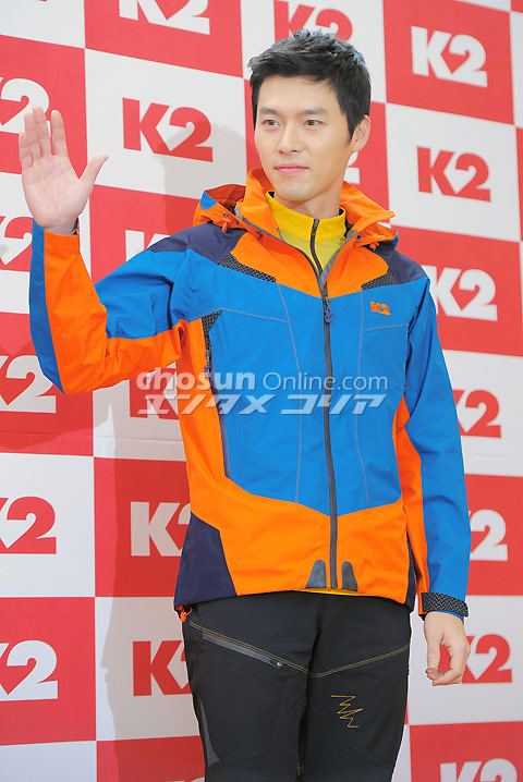 26日午前、Lタワー(ソウル市瑞草区)でアウトドアブランドK2のS/S ファッションショーが開催された。写真はフォトタイムに応じるヒョンビン。