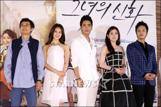ドラマ『彼女の神話』制作発表会 30日午後、東大門メガボックス(ソウル市中区)で、総合編成チャンネルJTBCの新月火ドラマ『彼女の神話』の制作発表会が行われた。写真は、フォトタイムでポーズを取るイ・スンリョル監督、ソン・ウンソ、パク・ユンジェ、チェ・ジョンウォン、John-Hoon(左から)。 チェ・ブソク記者 STARNEWS/朝鮮日報日本語版
