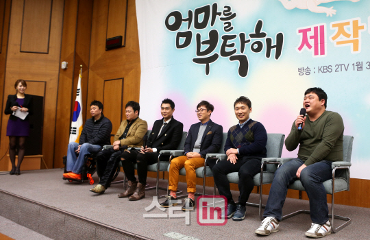 『母さんをお願い』制作発表会 ソウル・汝矣島のKBS新館国際会議室で27日午前、旧正月(今年は1月31日)特番『母さんをお願い』の制作発表会が行われ、カン・ウォンレ、キム・ヒョンチョル、ヨ・ヒョンス、ソン・デヒョン、イ・スンユン、キム・ジュンヒョン(左から)が出席した。 この番組は、実際の夫婦が中心となって繰り広げられる観察バラエティーで、出産や胎教などを扱う。30日初放送。 キム・ジョンウク記者 edaily/朝鮮日報日本語版