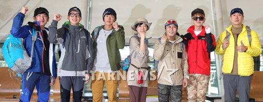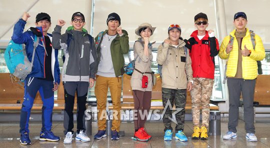 『ジャングルの法則inブラジル』出演者たち 人気リアリティー番組『ジャングルの法則inブラジル』(SBS)の出演者たちが10日午前、ブラジルに向かう前、仁川国際空港で記念撮影をしている。写真はイ・ミヌ、ポン・テギュ、オ・ジョンヒョク、イェ・ジウォン、キム・ビョンマン、SHINeeのオンユ、ペ・ソンジェ・アナウンサー(左から)。 イ・ギボム記者 STARNEWS/朝鮮日報日本語版