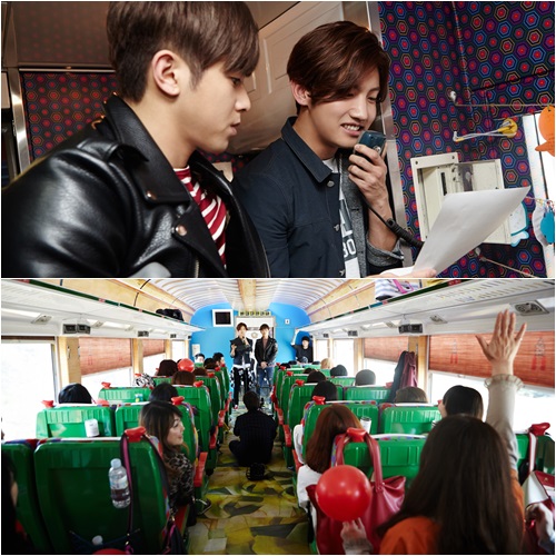 列車内が記念ロゴや写真などで飾り付けられたほか、移動中は東方神起が各客室を回って参加者と対面、トランプでゲームをしたりした。