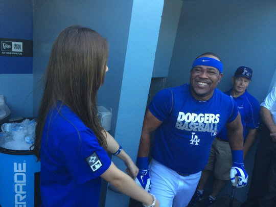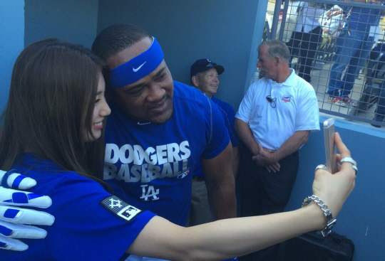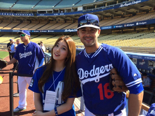 miss Aスジ、ドジャース選手らと記念撮影 米大リーグのロサンゼルス・ドジャースは29日(韓国時間)、球団のツイッターに、ドジャー・スタジアムを訪れたガールズグループmiss Aのスジがチームを代表する選手ヤシエル・プイグ、フアン・ウリーベ、アンドレ・イーシアーらと撮った写真を掲載した。 スジはチーム名が入った青いTシャツ姿で、手にロゴ入りバンドをし、明るい表情で選手たちと記念撮影。なお、スジはこの日、ロサンゼルス・ドジャース対シンシナティ・レッズ3連戦の最終戦に先立ち、始球式に臨んだ。 edaily/朝鮮日報日本語版