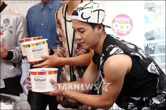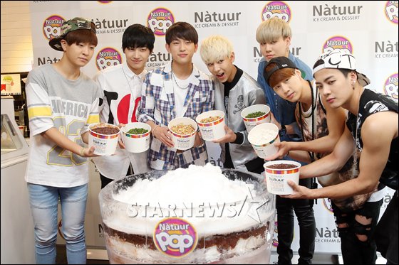 GOT7「かき氷召し上がれ!」 ソウル市鍾路区のアイスクリームチェーン「Natuur POP(ナチュール・ポップ)」で31日午前、消費者招待イベント「GOT7とともに過ごす涼しい夏」が行われ、GOT7のメンバーが大きなかき氷をつくった。 チェ・ブソク記者 STARNEWS/朝鮮日報日本語版