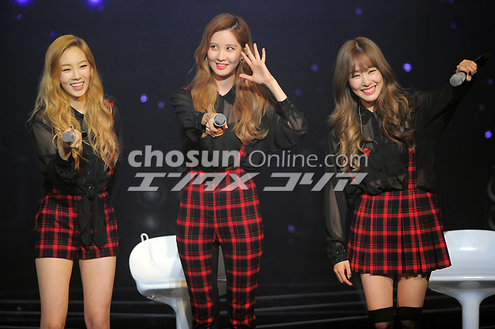 熱唱するテティソ オリンピック公園(ソウル市松坡区)内のウリ金融アートホールで16日午後、少女時代のグループ内ユニット「テティソ」(テヨン、ティファニー、ソヒョン)が2枚目のミニアルバム「Holler」PRイベントを行った。 イ・デドク記者 朝鮮日報日本語版