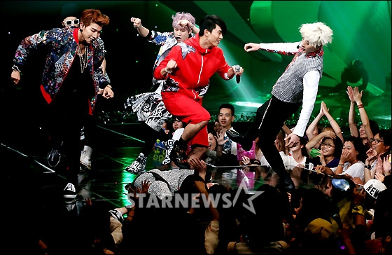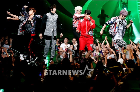 2PMの熱いステージ 人気グループ2PMが18日午後、ソウル市内のCJ E&Mセンターから放送された音楽専門チャンネルMnetの『M Countdown』で熱いステージを繰り広げた。 ホン・ボンジン記者 STARNEWS/朝鮮日報日本語版