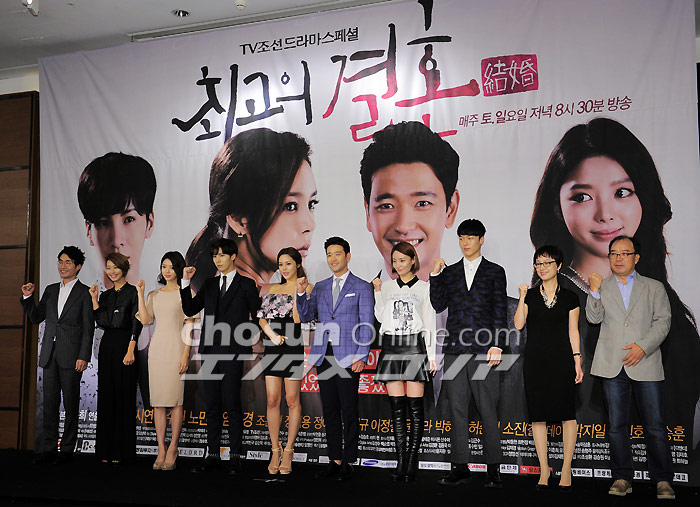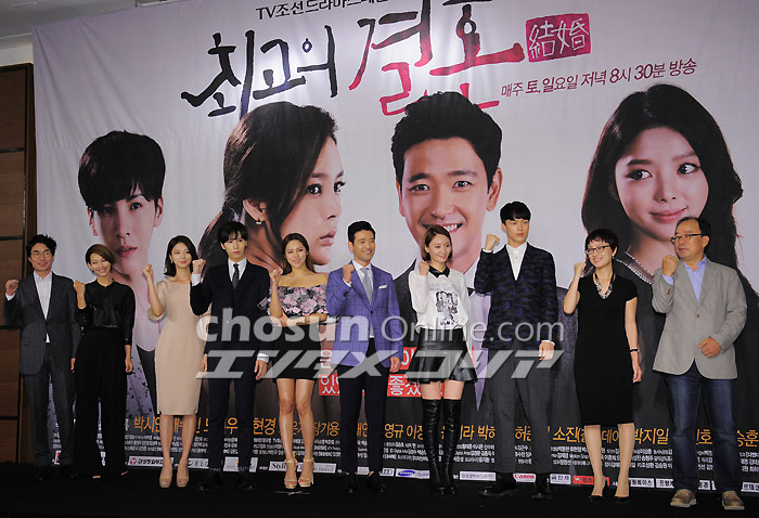 『最高の結婚』制作発表会 ソウル市永登浦区のホテル「コンラッド・ソウル」で22日午後、ドラマ『最高の結婚』の制作発表会が行われ、俳優ソン・ヨンギュ、チョン・エヨン、オム・ヒョンギョン、ノ・ミヌ、パク・シヨン、ペ・スビン、チョ・ウンジ、チャン・ギヨン、コ・ユンヒ脚本、オ・ジョンロク演出(左から)が出席した。 イ・デドク記者 朝鮮日報日本語版