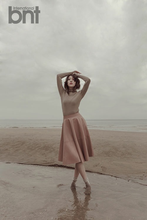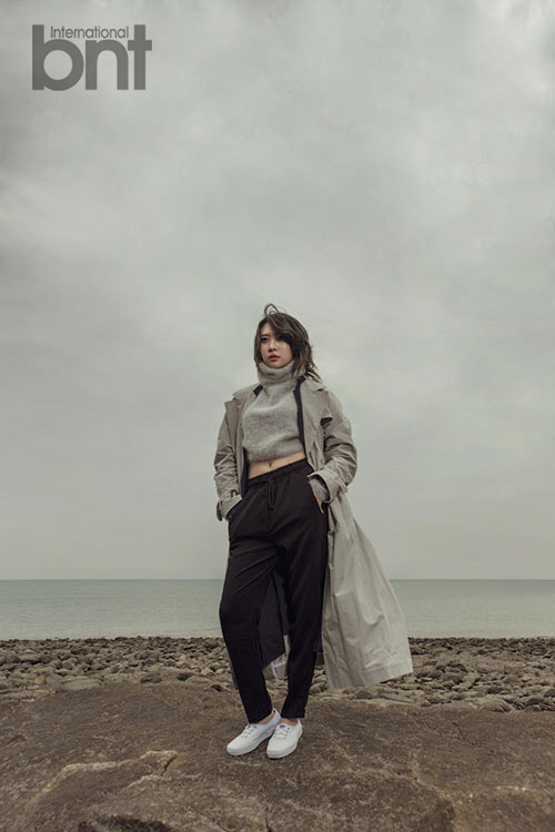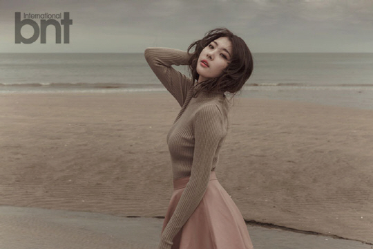 歌手ソンミが「bnt」のグラビアに登場。ジャケット1枚だけを羽織って冷たい秋の海に入り、堂々としていながらも孤独感を漂わせている。