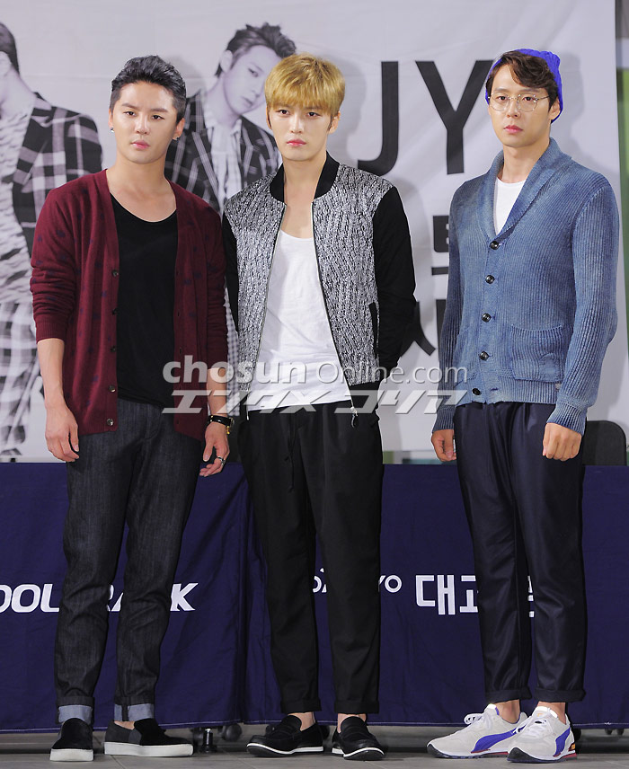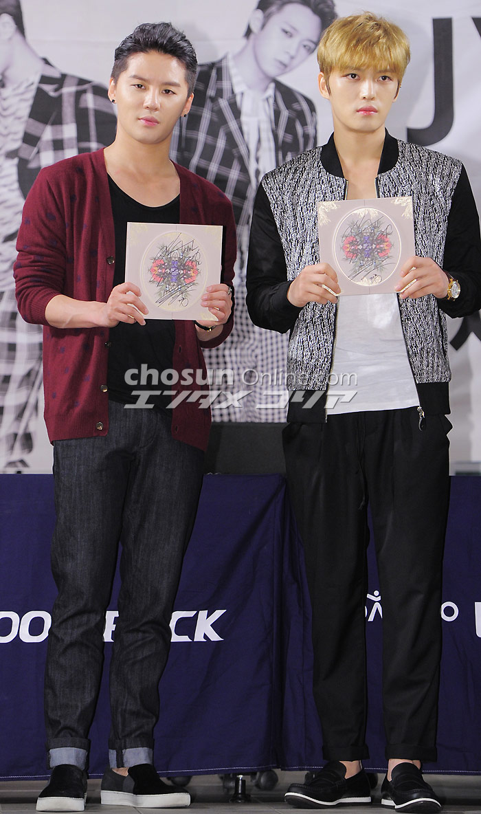サイン会に臨むJYJ 人気グループJYJが29日午後、ソウル市竜山区のアイパークモール・イベント広場で2ndアルバム「JUST US」発売記念ファンサイン会を開催した。 イ・デドク記者 朝鮮日報日本語版