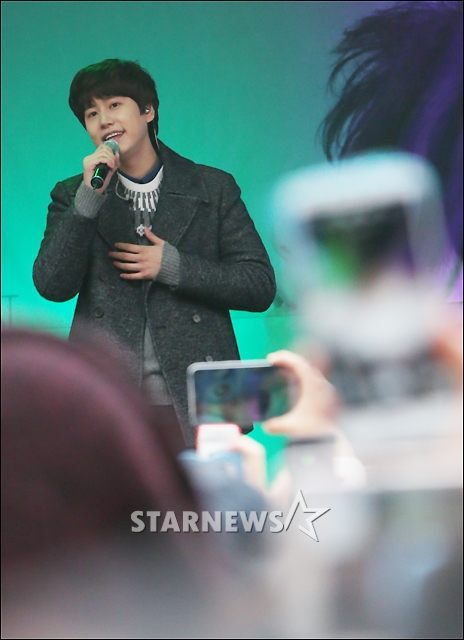 熱唱するSJキュヒョン SUPER JUNIORのキュヒョンが28日午後、ソウル市西大門区の梨花女子大学学生文化館前でミニコンサートを行った。 キム・チャンヒョン記者 STARNEWS/朝鮮日報日本語版