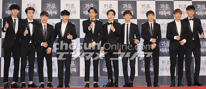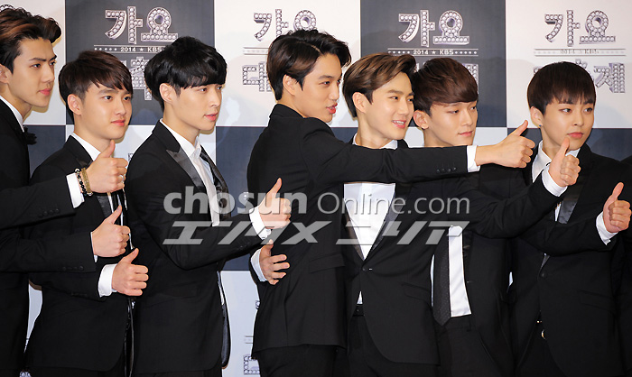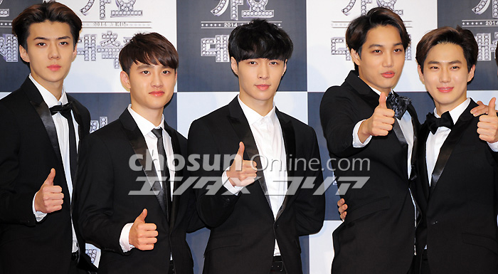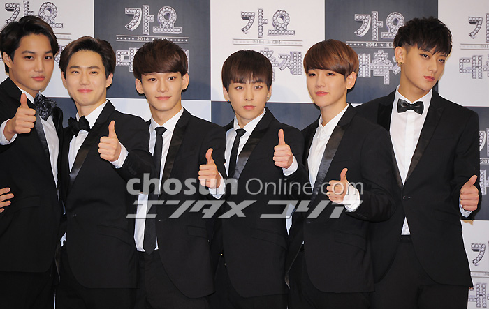 EXO「黒スーツでキメました!」 26日午後、ソウル・汝矣島のKBSホールで「2014 KBS歌謡大祝祭」が開催された。写真は男性アイドルグループEXO。全メンバーが黒のスーツでビシッとキメめている。 イ・デドク記者 朝鮮日報日本語版