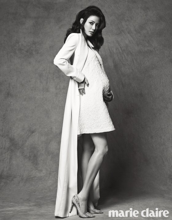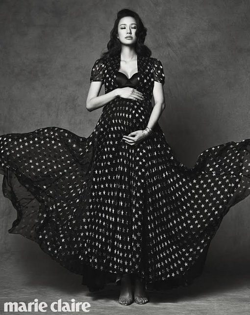 ソン・テヨンはファッション誌「マリ・クレール」2月号のグラビアに登場、妊婦とは思えないほど見事なプロポーションをアピールした。