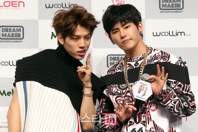 記者会見に臨むINFINITE H INFINITEのグループ内ユニット「INFINITE H(ドンウ&ホヤ)」が26日、ユニクロAXホール(ソウル市広津区)でニューアルバム「Fly Again」の発売記念記者会見を行った。写真は、あいさつをするドンウ(左)とホヤ。 同アルバムのリード曲「Pretty」は、恋に落ちた男女2人の感情をドンウとホヤがそれぞれの方法やスタイルで表現する、ソフトなビートのヒップホップナンバーだ。 パン・イングォン記者 edaily/朝鮮日報日本語版
