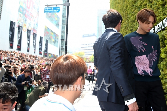 コスメブランドのイベントに出席したEXO ソウル市中区明洞のコスメブランド「ネイチャーリパブリック」明洞ワールド店で23日午後、リニューアルオープン記念イベントが行われ、人気グループEXOが出席した。 イ・ジョンホ・インターン記者 STARNEWS/朝鮮日報日本語版