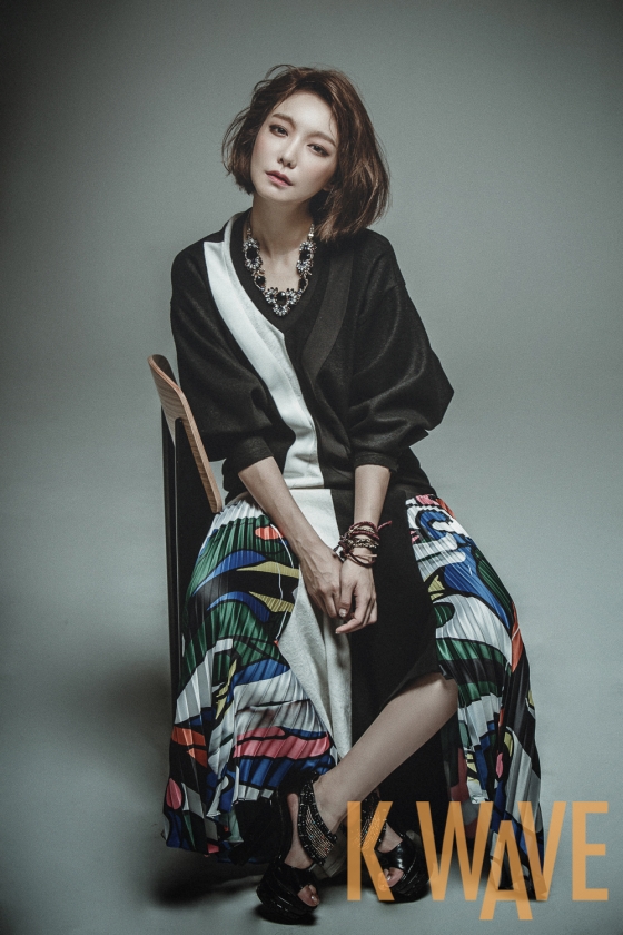 女優シン・ソユルが韓流マガジン「KWAVE」9月号のグラビアに登場、魅惑的な雰囲気を漂わせている。