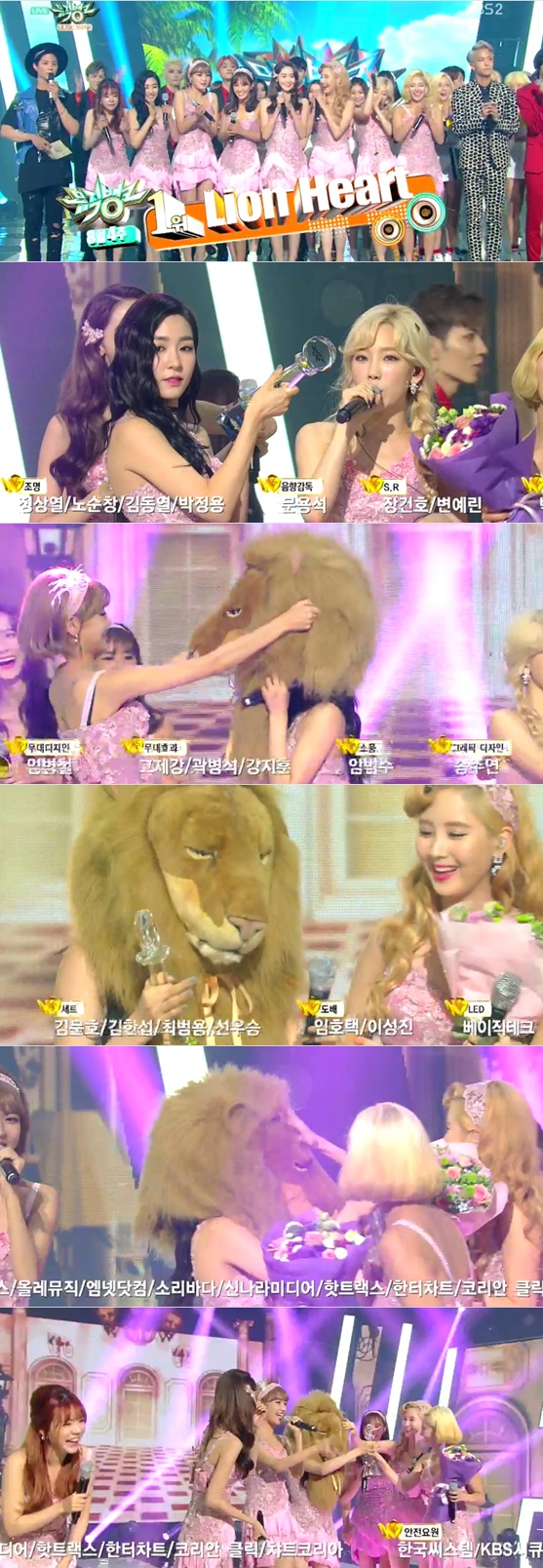 アイドルグループ少女時代の新曲「Lion Heart」が、28日に放送された音楽番組『ミュージックバンク』(KBS第2)で1位になった。