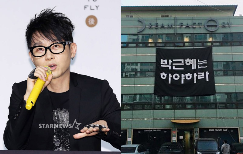 歌手イ・スンファンが、所属事務所の社屋に朴槿恵大統領の下野を求める大型の垂れ幕を掲げた問題。違法性を指摘され、撤去していたことが分かった。