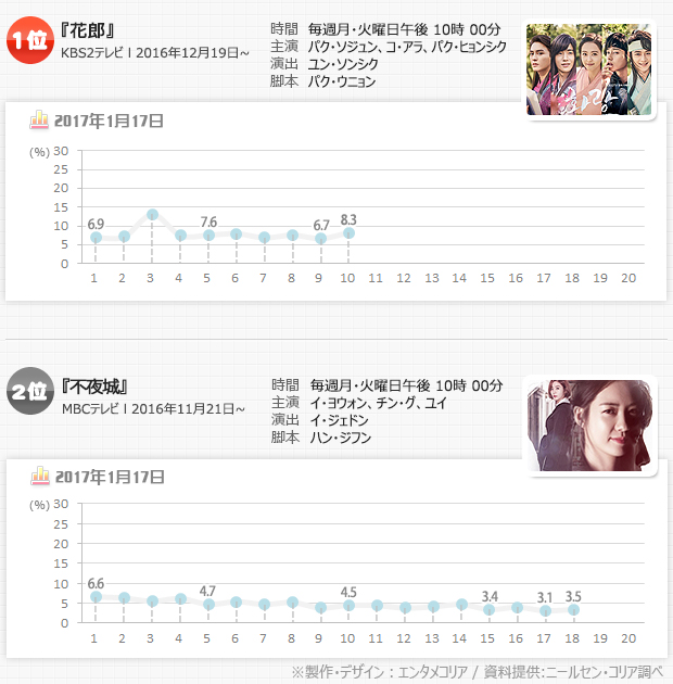 一方、同時間帯に放送された『花郎』(KBS第2)は8.3%、『不夜城』(MBC)は3.5%だった。