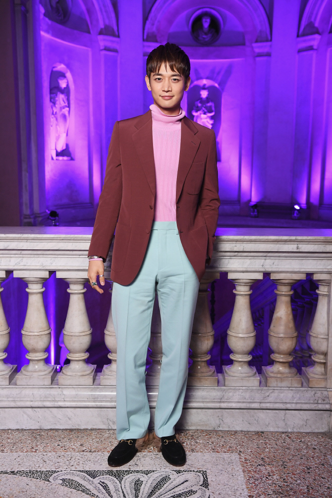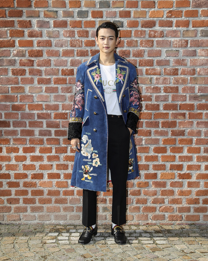 韓国を代表して出席したミンホは、GUCCIのクリエーティブ・ディレクターを務めるアレッサンドロ・ミケーレがデザインした、動植物のパッチワークと刺繍の飾りが目立つブルーのベルベットコート、シンプルなウォッシュドのシャツにジュエリーという装いでエッジのあるスタイルを完成させ、視線を引き付けた。