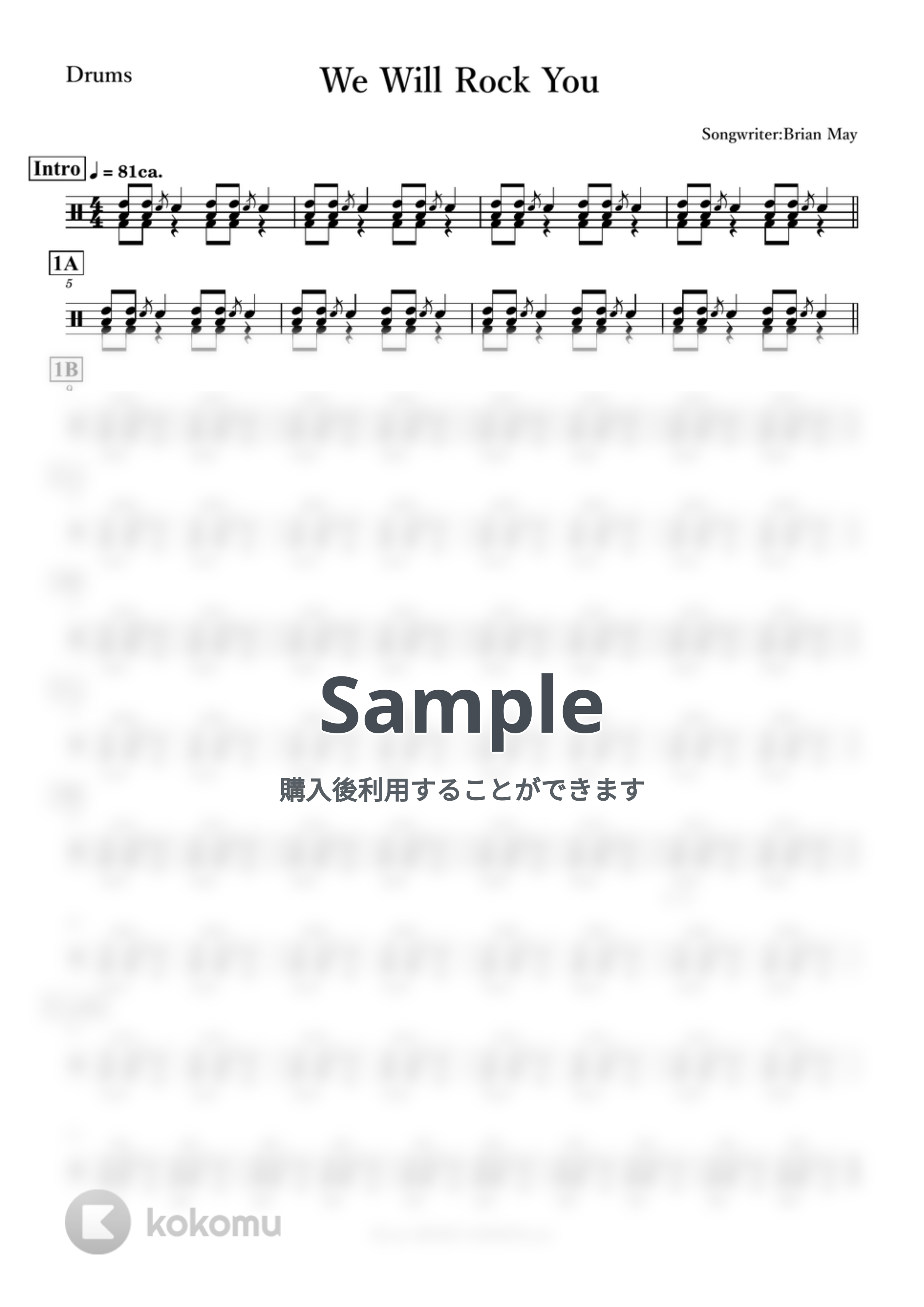 ドラムスコア付きデモ演奏です♪