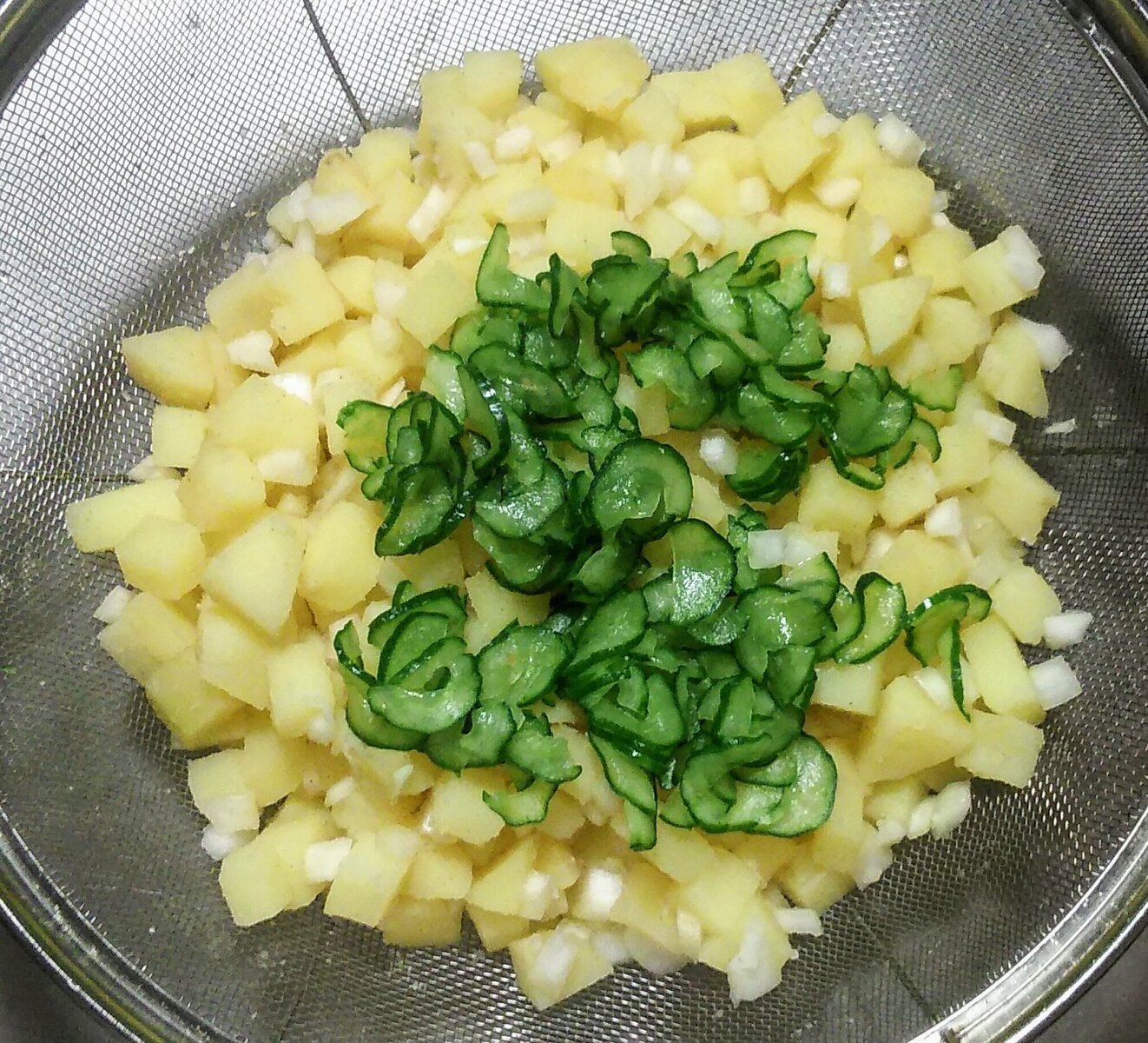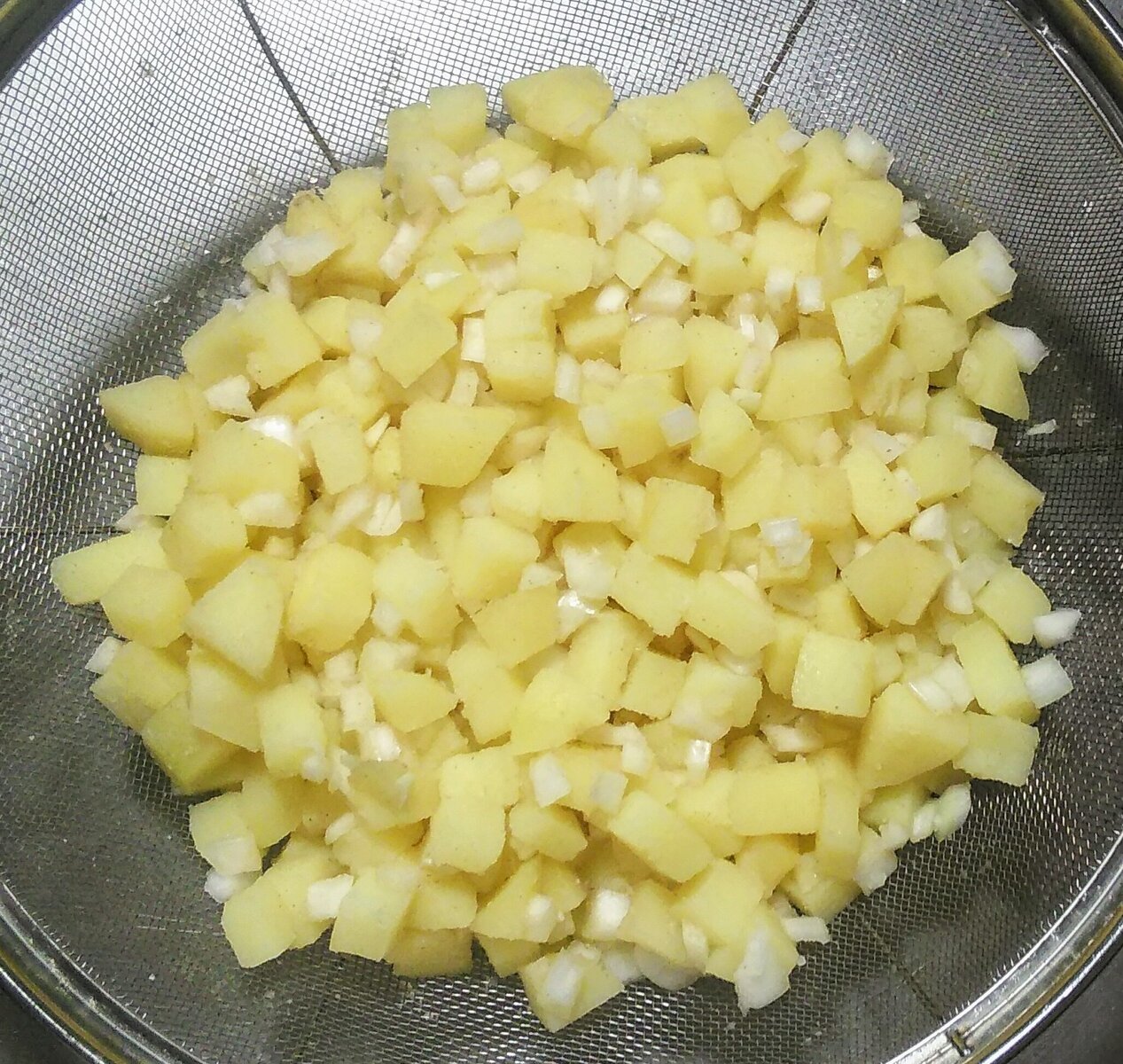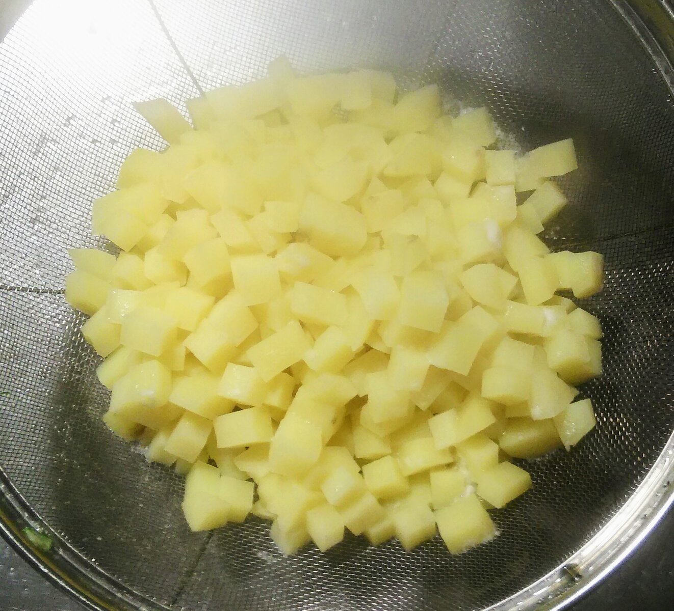 茹で上げたジャガイモを、ザルに上げてる間に・・・