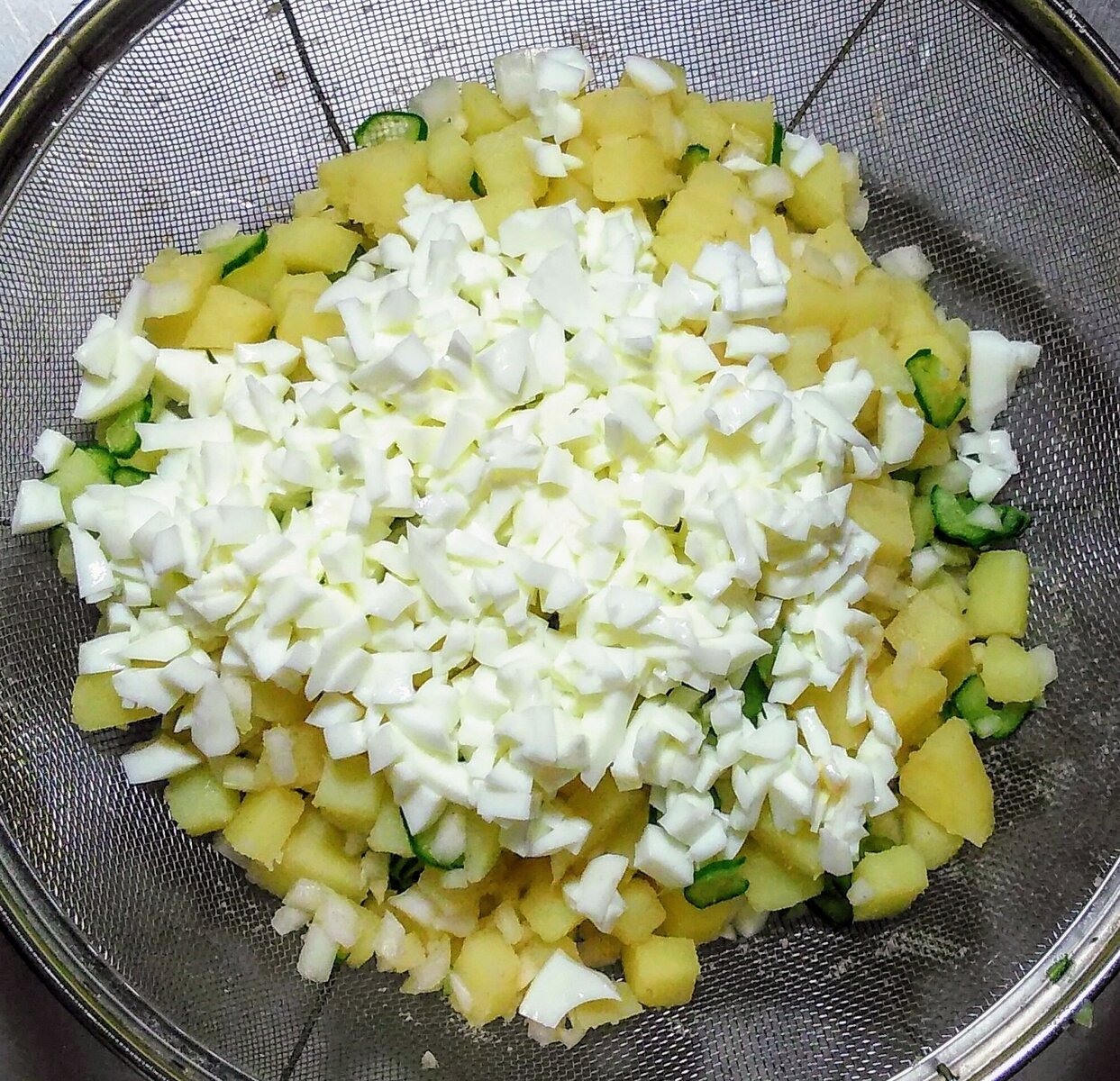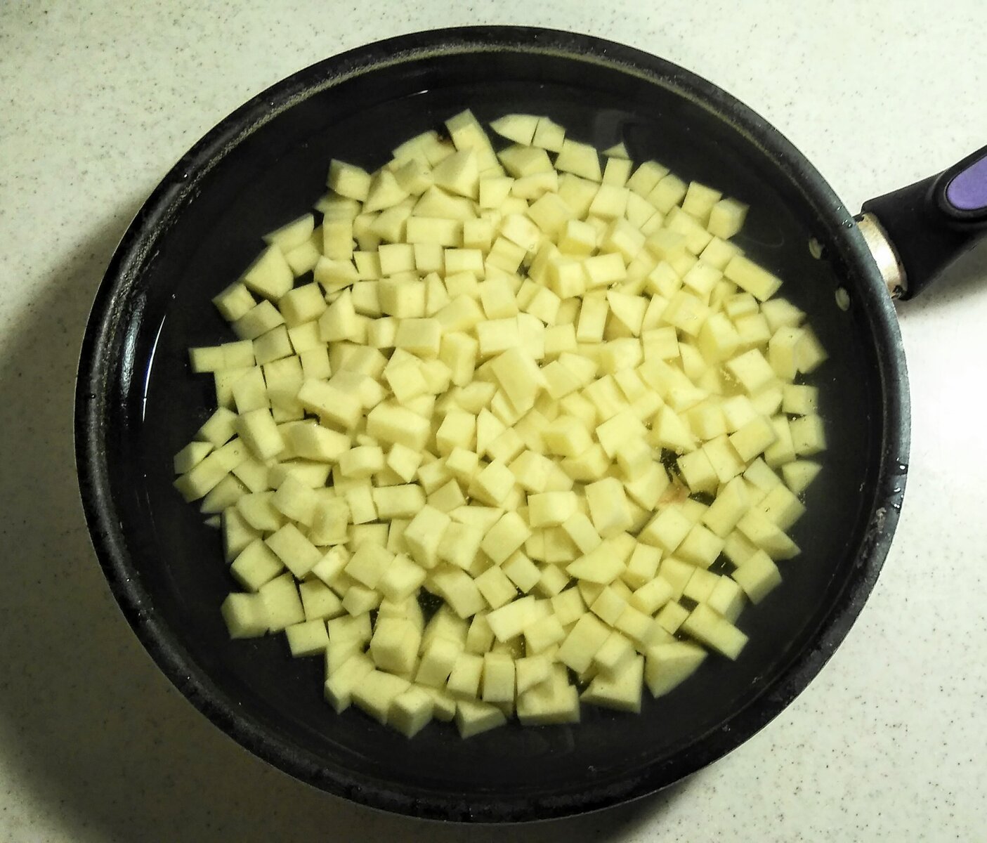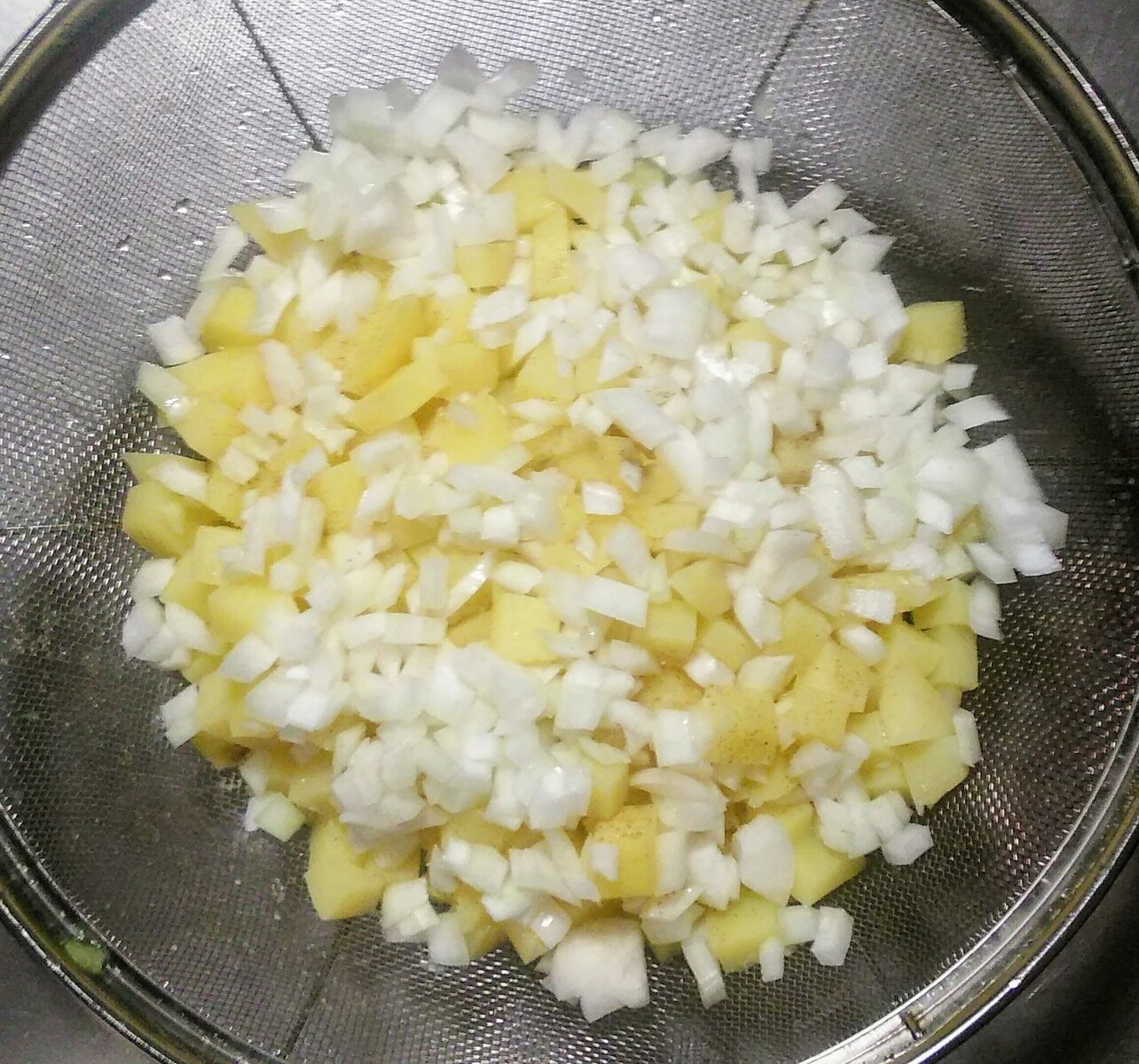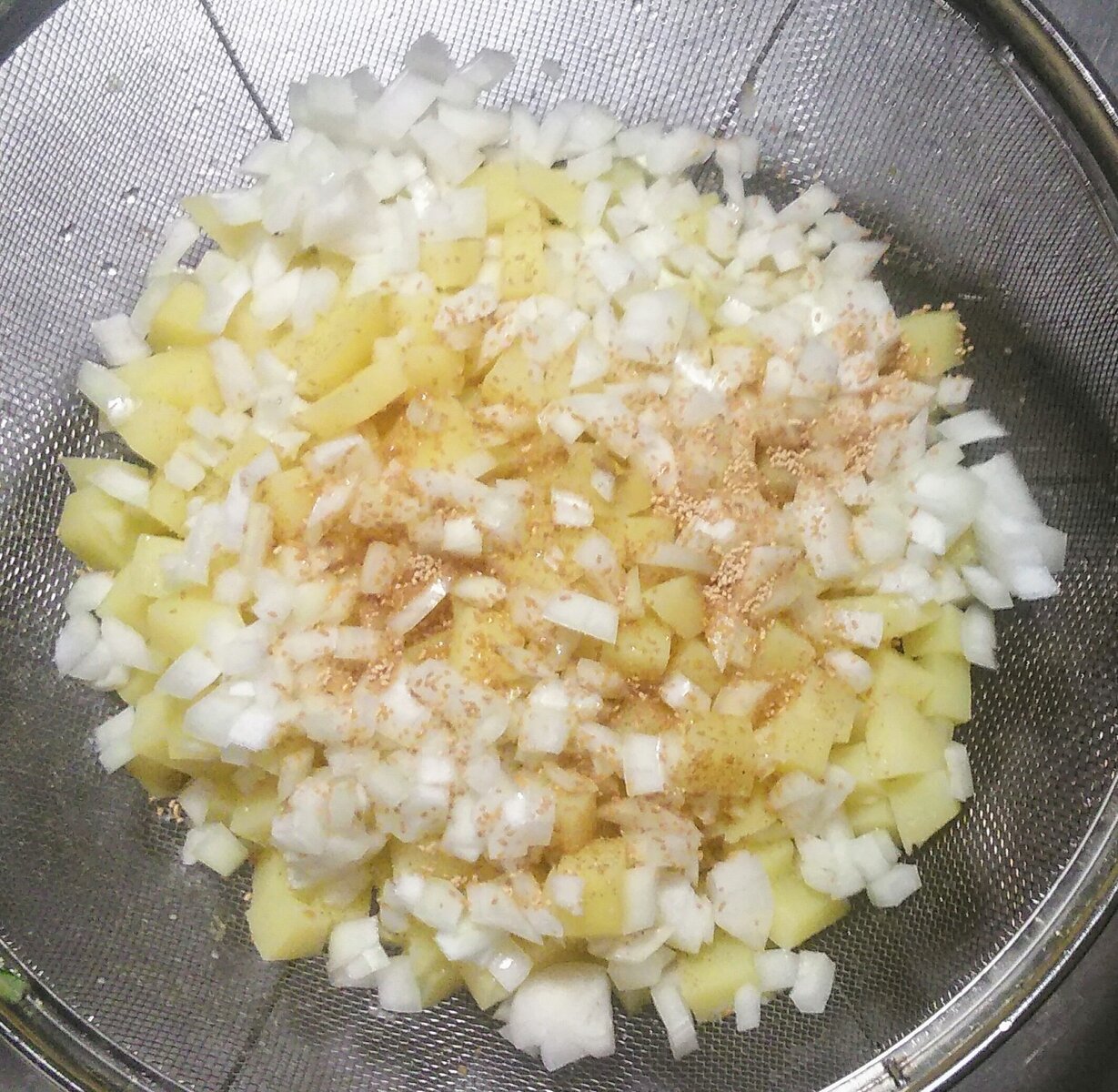 茹で上げたジャガイモを、ザルに上げてる間に・・・