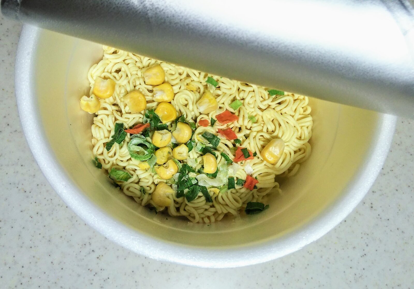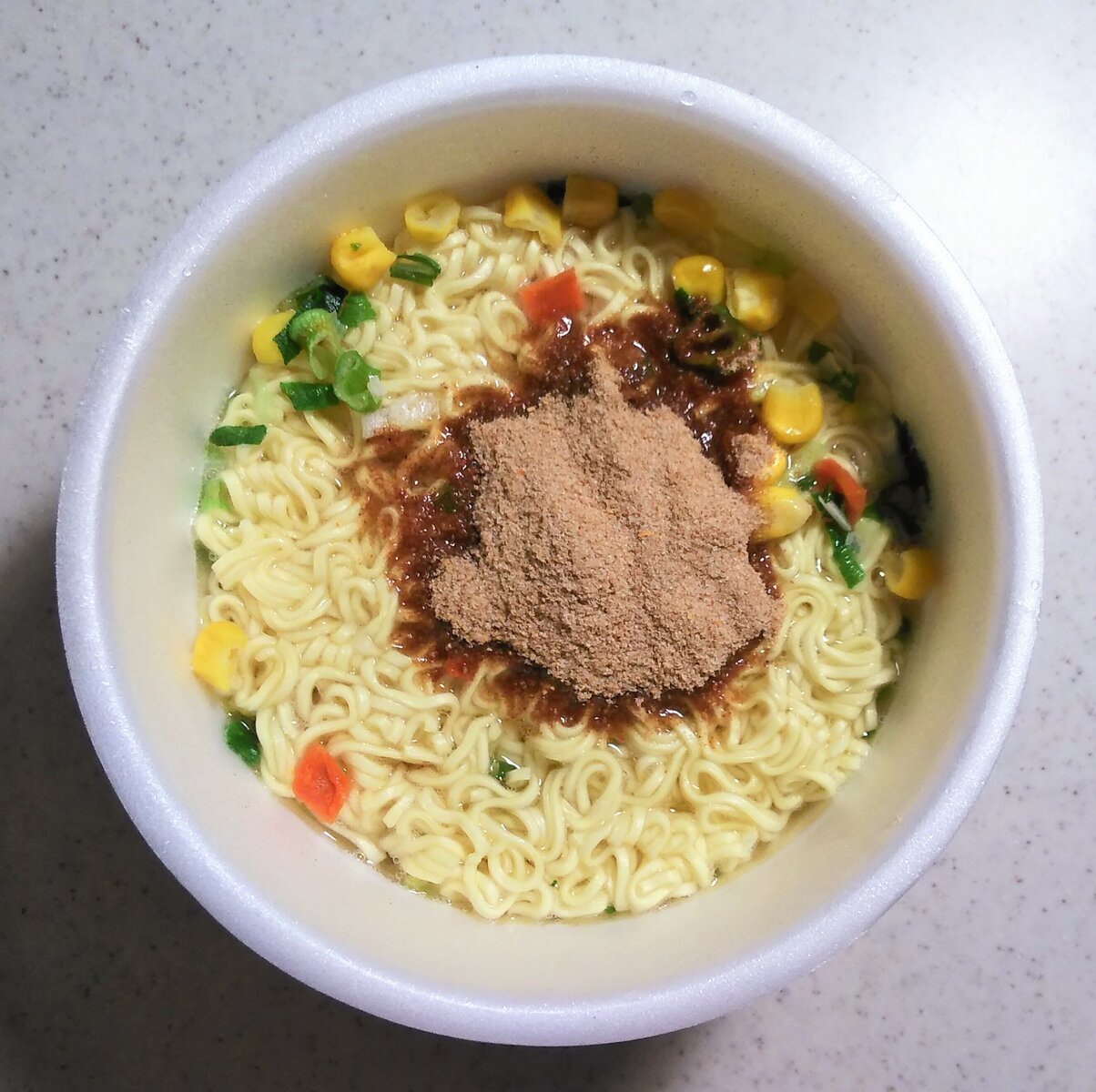 かやくをブチ込み、熱湯を注ぐ。