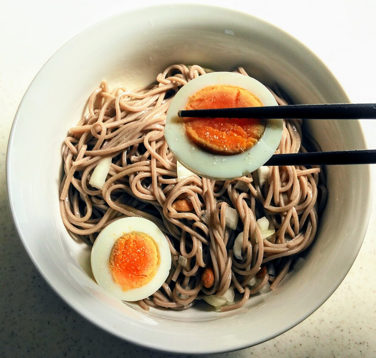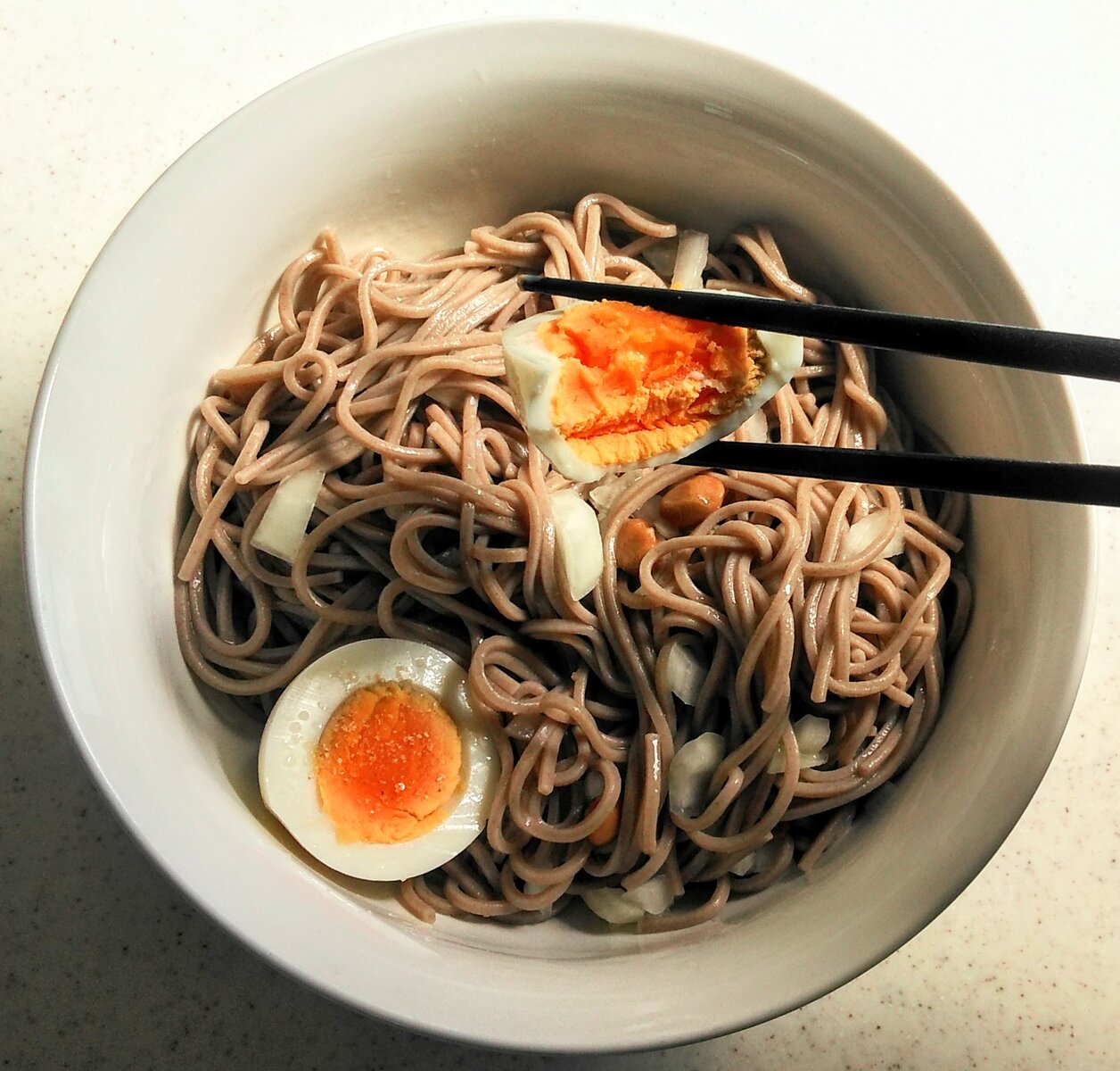遅昼麺は蕎麦午前11時チョイ過ぎ・・・ 我家至近のピーコックへ。 こんなモン買って来た。 ひねり揚げを食いながら・・・ コカ・コーラをゴックンゴクン。 午後2時過ぎ・・・ 納豆&タマネギ&茹で玉子。 乾麺の蕎麦を茹で、流水で〆る。 丼に入れ込み・・・ 納豆をのっけて、白出汁を回し掛け・・ 乱切りのタマネギをブチ込み・・・ 茹で玉子をのっける。 コレを手繰って、遅昼麺終了。