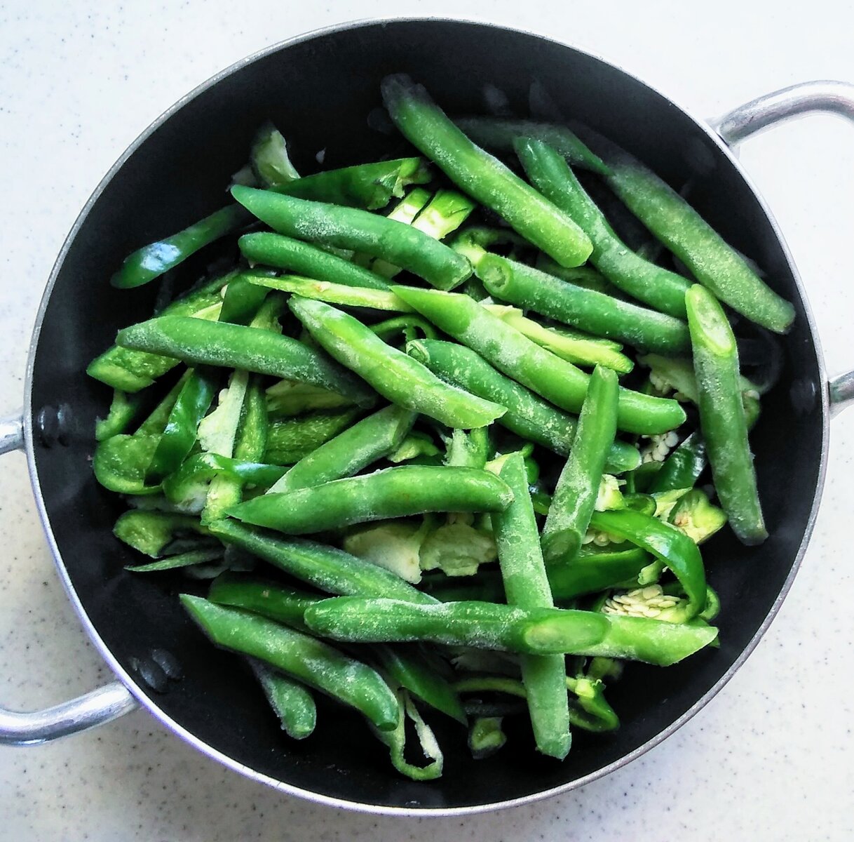 冷凍のインゲンを取り出し・・・
