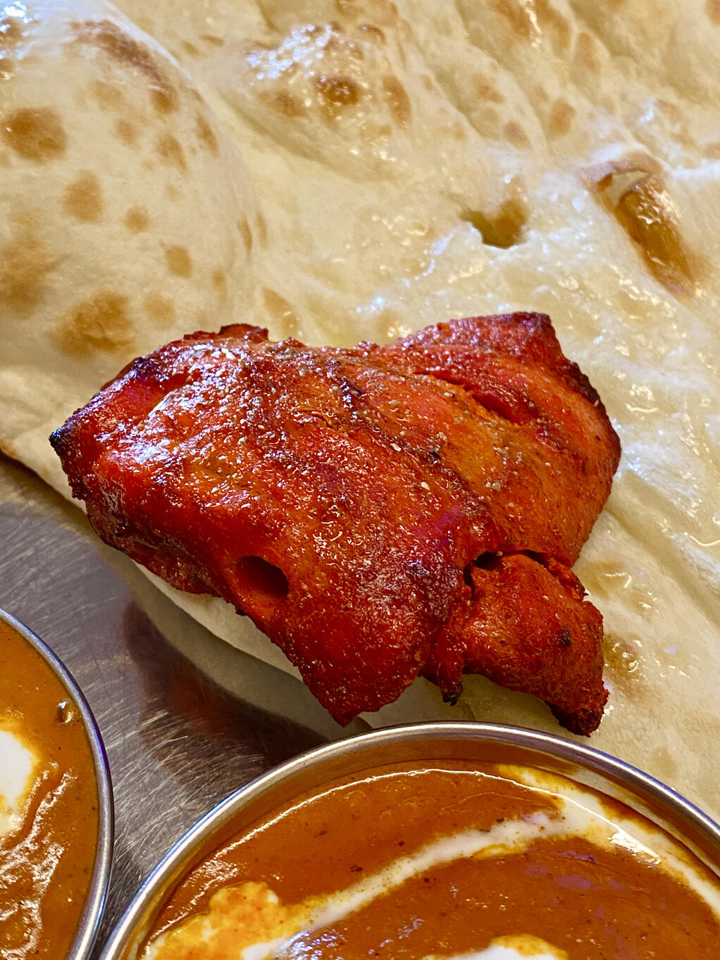 このナンがあまりにも美味しすぎるので、これだけペロリといただいてから、無料のナンをおかわりしてカレーを食べるのがルーティンになってます。![]()