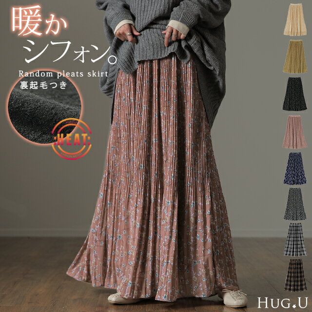 秘密の暖か シフォン スカート ロングスカート 【即納】 ロング レディース ボトムス 裏起毛 プリーツスカート プリーツ チェックスカート チェック シフォンスカート マキシ ゴム 黒 ボア Aライン 体型カバー 大きいサイズ 花柄 小花柄 春 冬 HUG.U楽天市場${EVENT_LABEL_01_TEXT}