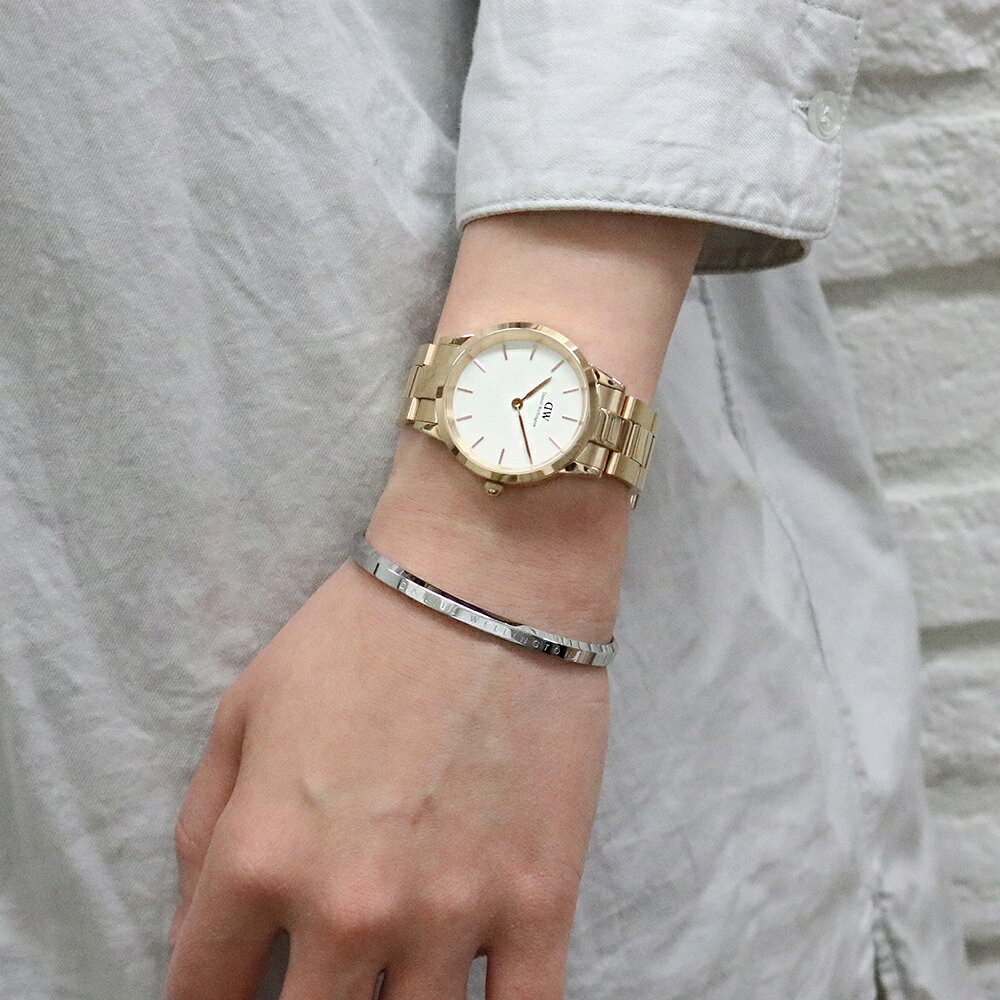 ゴールドカラーの時計と馴染んで