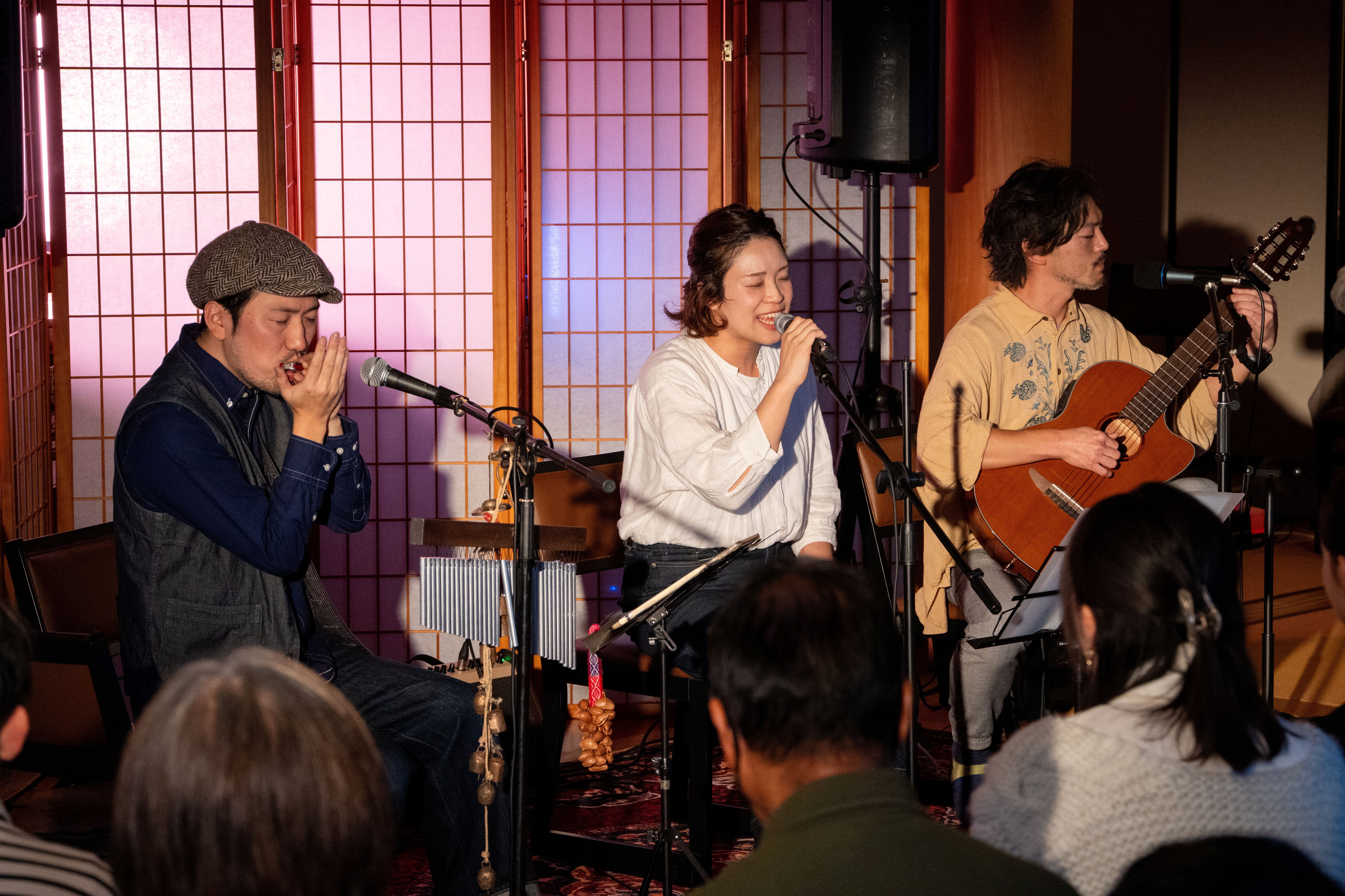 堂内にはハーモニカ・倉井夏樹さん、ボーカル・砂貝さん、