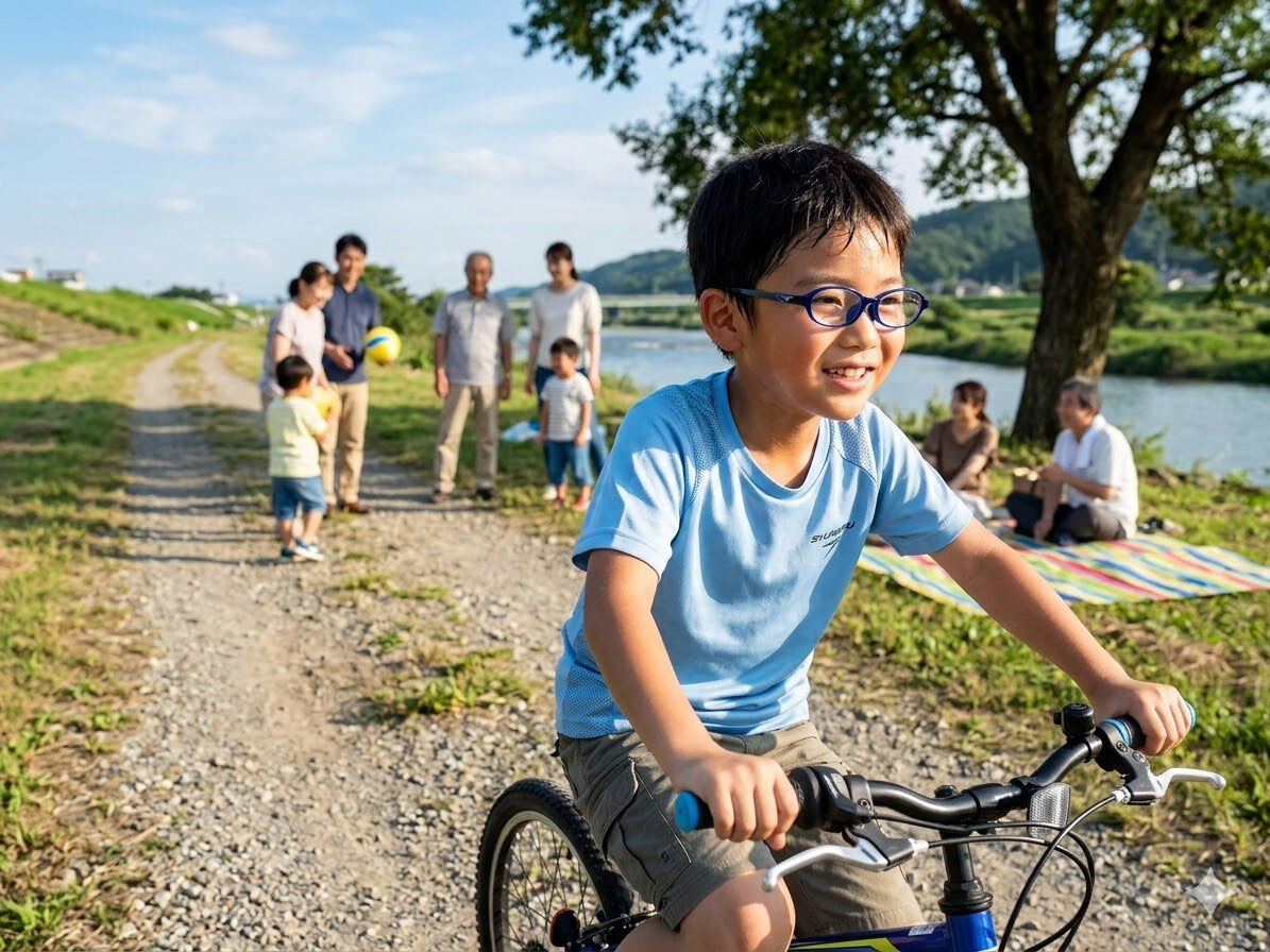 散歩や外遊びが大好きなアクティブなお子様にとって、メガネは「体の一部」。 そこでおすすめしたいのが、当店でも大人気の**キッズ用メガネ『瞬足(SYUNSOKU)』**です。